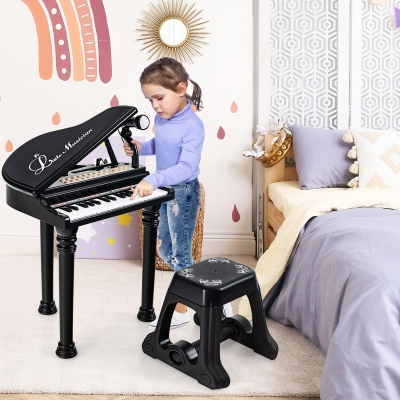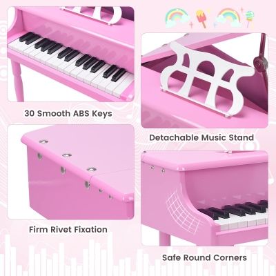 Classical Kids Piano, 30 Keys Wood Toy Grand Piano with Music Stand and Bench