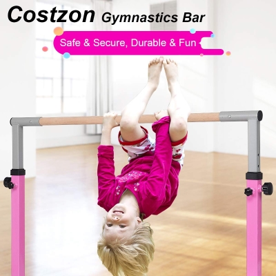 Expandable Gymnastics Training Bar,3 to 4.5 FT Height Adjustable Junior Horizontal Kip Bar