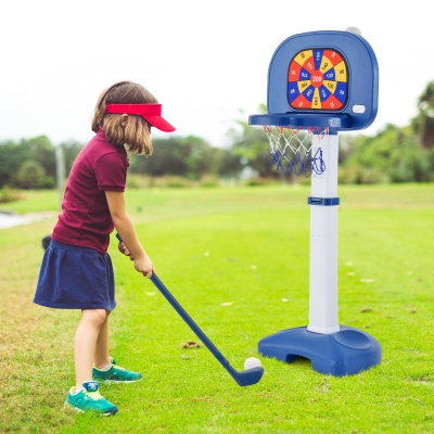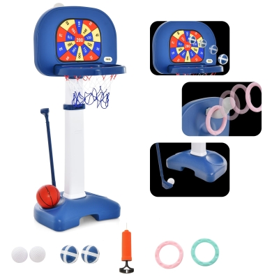 3-in-1 Toddler Basketball Hoop & Golf Stand, Basketball Stand with Ring-Toss & Sandbag-Toss & Golf Ball